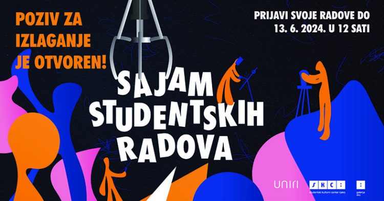 Sajam studentskih radova izložba je koja se već tradicionalno održava u Galeriji SKC s ciljem povećanja vidljivosti studentskih radova u lokalnoj zajednici te povezivanja studentica i studenata sa širom javnosti. Pozivamo sve zainteresirane UNIRI studentice i studente te alumni studente da prijave svoje radove za izlaganje na ovogodišnjem Sajmu studentskih radova koji će se održati 20. i 21. lipnja 2024. u Galeriji SKC u Kružnoj ulici.